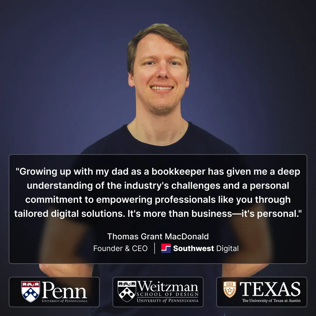 Hello! I'm Thomas Grant MacDonald, the founder of Southwest Digital Marketing. With a deep-rooted commitment to digital excellence and client empowerment, I lead our team in delivering tailored solutions that drive success for bookkeepers like you.